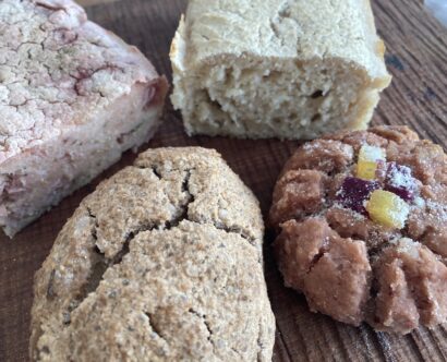 玄米100%(レモンアーモンドさつまいも) 600en 1/2 300en (発芽モードにした玄米を自家ミキサーで挽き玄米クリーム(グレインクリーム)を合わせて玄米酵母で発酵させています。今月は、旬のレモンを丸ごと [&hellip
