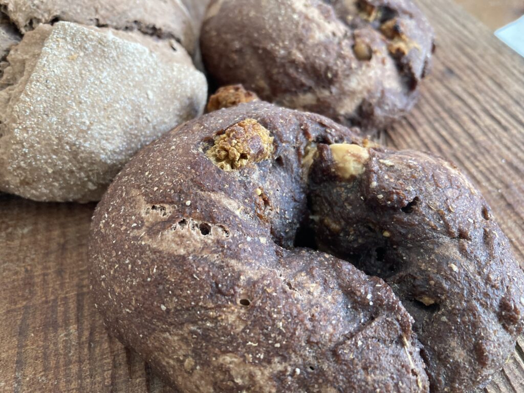 材料)大分県産在来小麦(契約栽培)無農薬全粒粉(美山自家栽培)海塩 天然水 自家製グレインミルク(京都産)オーガニックホワイトマルベリー(トルコ産)オーガニックココア(オランダ産)オーガニックヘーゼルナッツ 無農薬さつまいも(奈良 横田家)