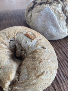 原材料)自家栽培美山小麦(無農薬 木の石臼でゆっくり挽いていただいています) 無農薬自家栽培(全粒.ライ麦(京都美山産)チベット湖塩 天然水 酒粕酵母 無農薬祝米を使った酒粕(伏見月の桂) 自家製玄米クリーム(京都産無農薬玄米)無農薬りんご(青森 留めさん)