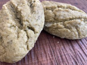 (発芽モードにした玄米を自家ミキサーで挽き玄米クリーム(グレインクリーム)を合わせて玄米酵母で発酵させています。今月は、セロリペースト+さつまいもを合わせて型に入れないでカンパーニュ風に焼き上げます)
