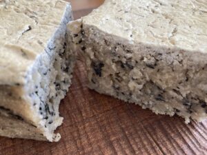(発芽モード(発酵させた)にした玄米を自家ミキサーで挽き玄米クリーム(グレインクリーム)を合わせて玄米クリーム酵母に上関ハートの島祝島の想いの詰まったひじき(山口県 上関にある自然の生態系が残る豊かな大地で育ったひじきです)を練り込み焼き上げました。とっても香り高い美味しいひじきです。)