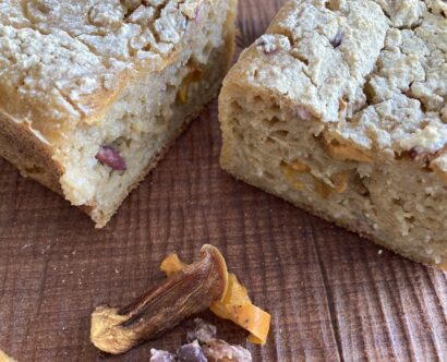 pane di riso 玄米100%(柿+小豆入り)700円 1/2 350円 (発芽モード(発酵させた)玄米に玄米酵母と玄米クリームを合わせ柿をスライスして石窯でセミドライにして在来種の小豆を炊いて [&hellip