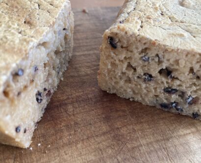 pane di riso 玄米100%(干し柿黒豆入り)700円 1/2 350円 (発芽モード(発酵させた)玄米に玄米酵母と玄米クリームを合わせ自家製干し柿に黒豆を合わせて焼き上げます。季節限定モッチリパンです [&hellip